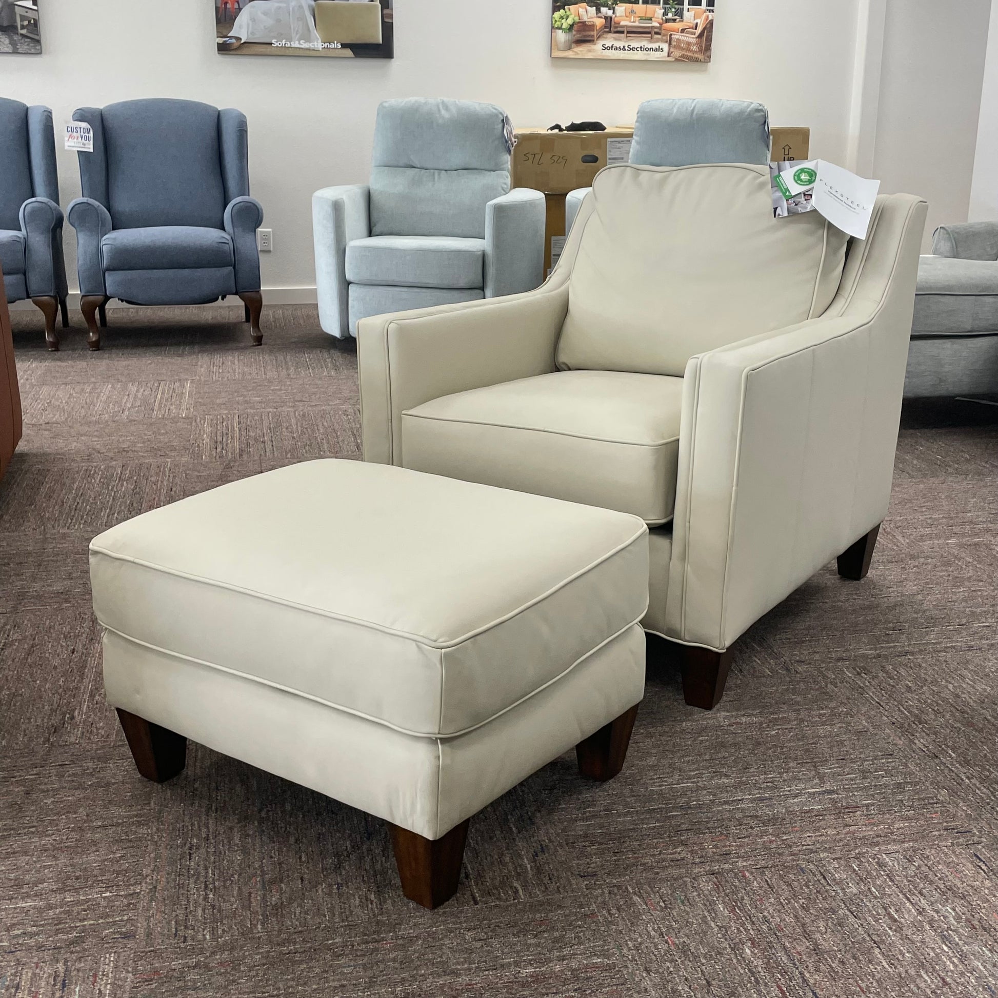Finley Leather Chair and Ottoman